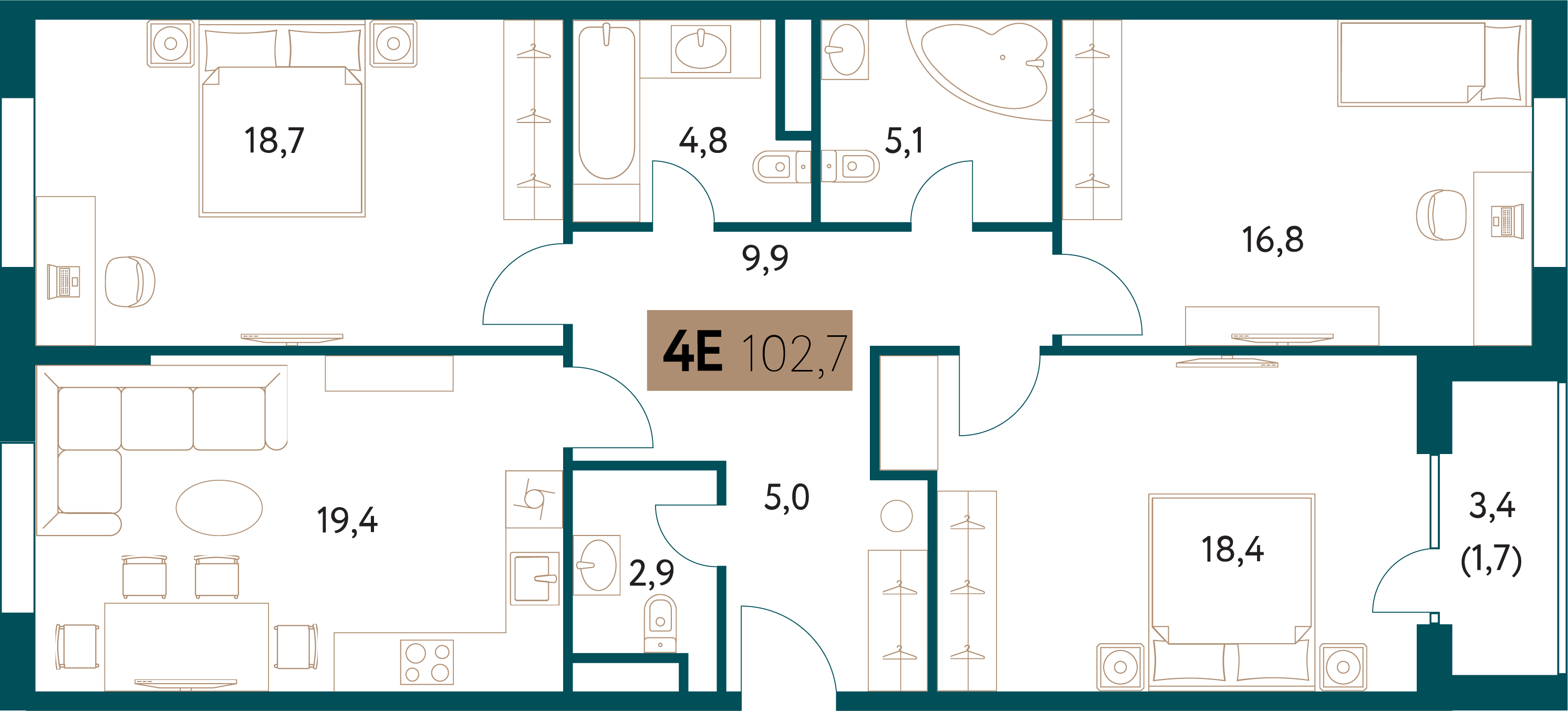 Квартира 103.00м2 на 12 этаже за 53 459 377 Р.