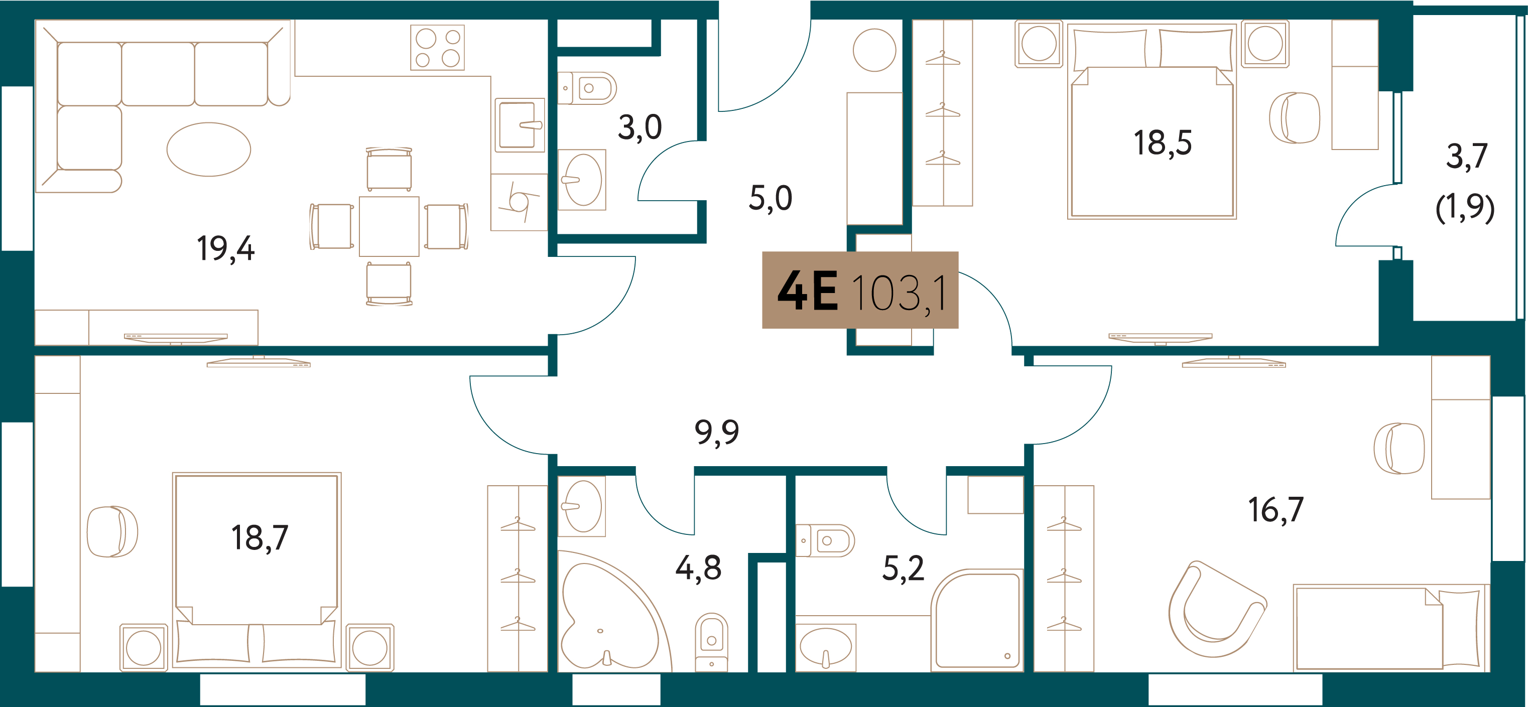Квартира 103.10м2 на 4 этаже за 48 527 114 Р.