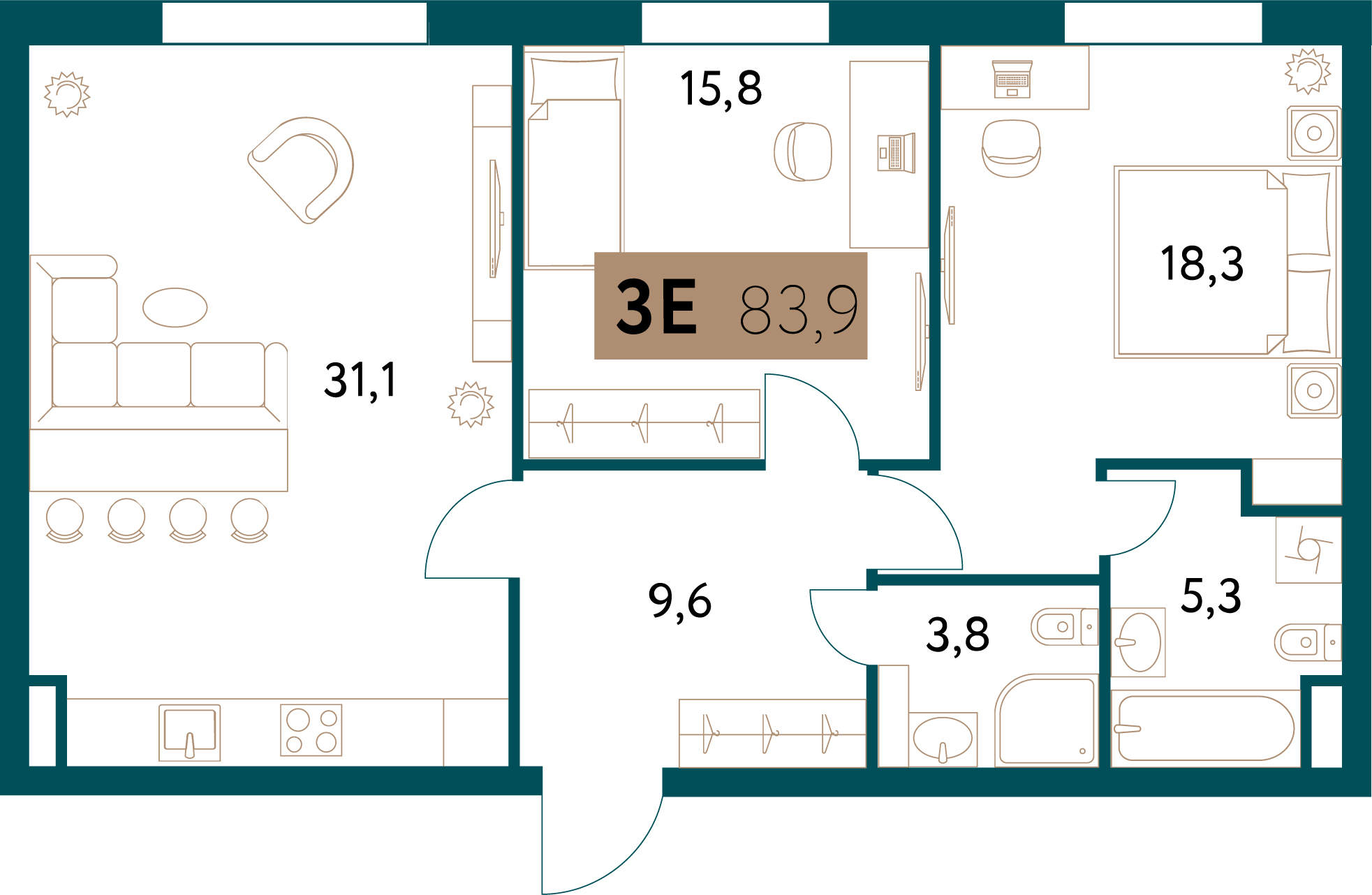 Апартаменты - 83.80м2