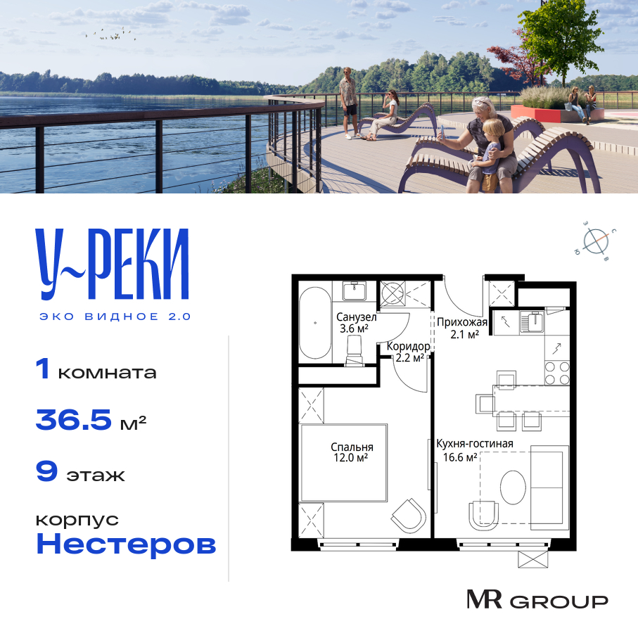 Квартира в Эко Видное 2.0 36.50м2 на 9 этаже за 9 260 050 Р.