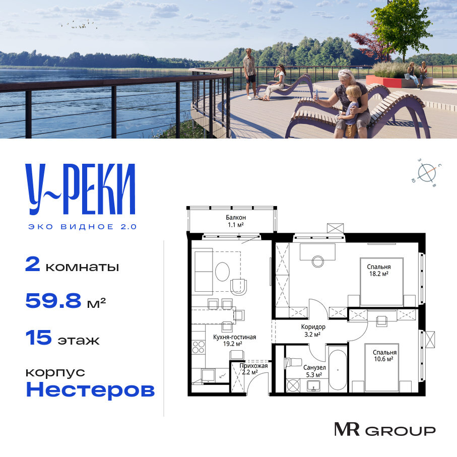 Квартира в Эко Видное 2.0 59.80м2 на 15 этаже за 15 751 320 Р.