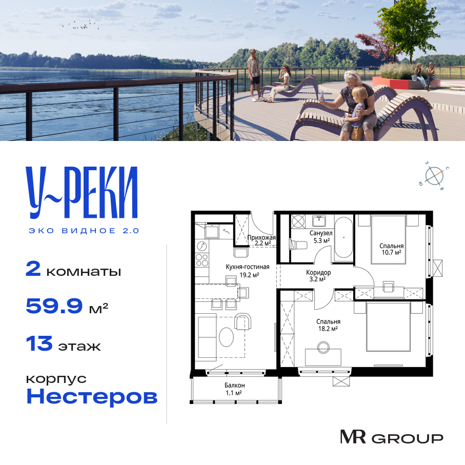 Квартира в Эко Видное 2.0 59.90м2 на 13 этаже за 15 326 913 Р.