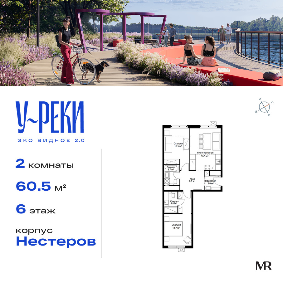 2-комнатная квартира - 60.50м2