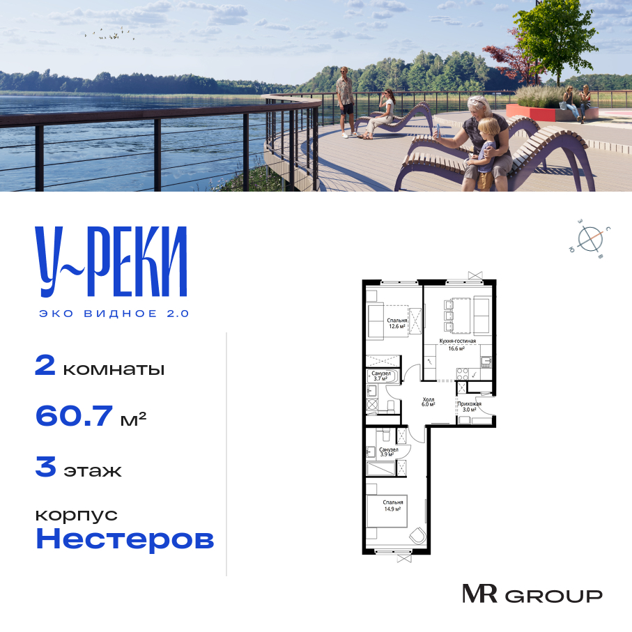 Квартира в Эко Видное 2.0 60.70м2 на 3 этаже за 12 827 306 Р.