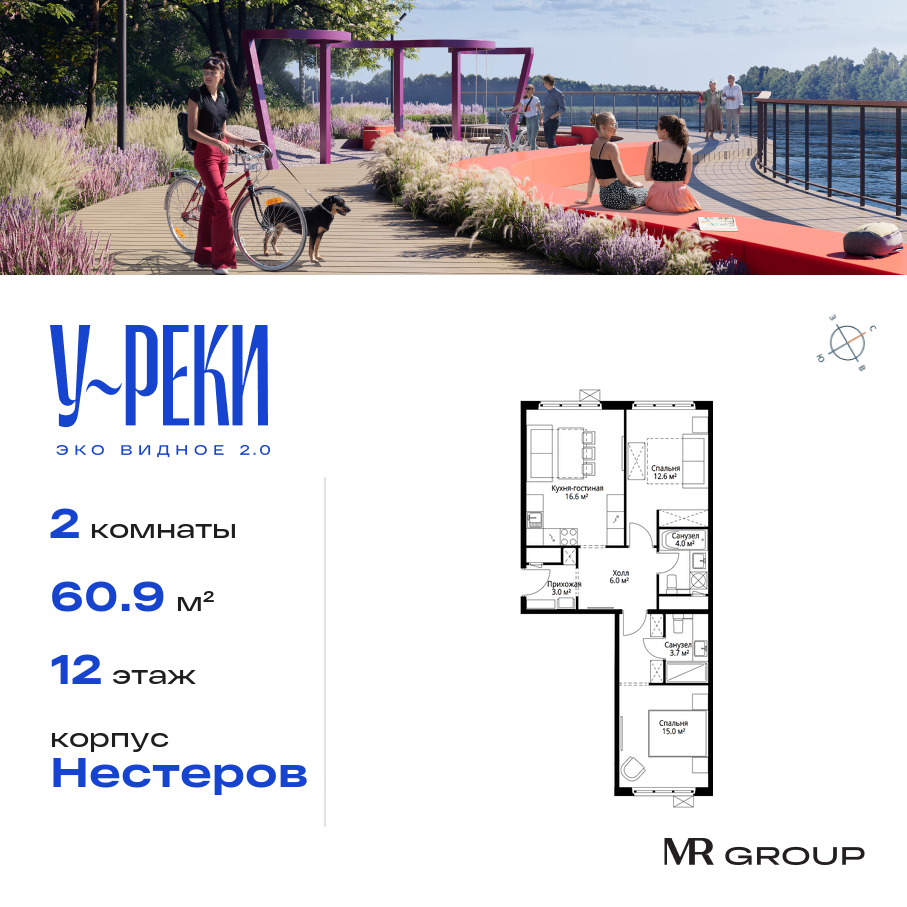 Квартира в Эко Видное 2.0 60.90м2 на 12 этаже за 13 672 050 Р.