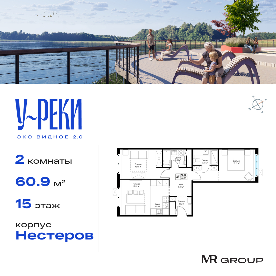 Квартира в Эко Видное 2.0 61м2 на 15 этаже за 13 639 600 Р.