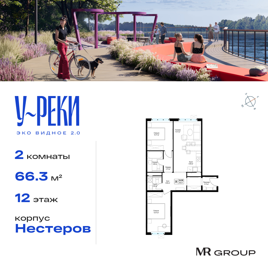 2-комнатная квартира - 66.40м2