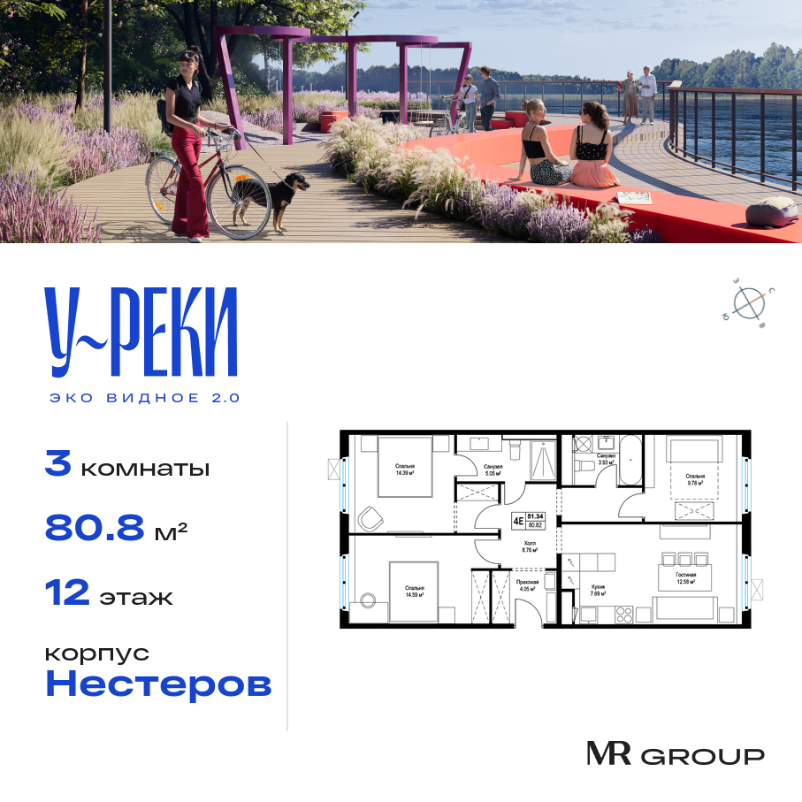 3-комнатная квартира - 80.80м2