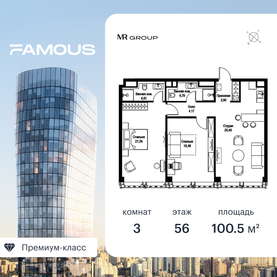 Квартира в Famous 100.56м2 на 56 этаже за 70 894 800 Р.