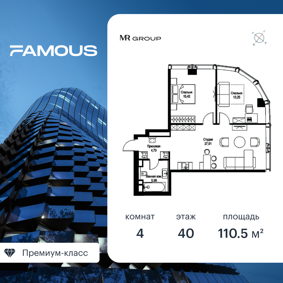 Квартира в Famous 110.58м2 на 40 этаже за 79 263 744 Р.