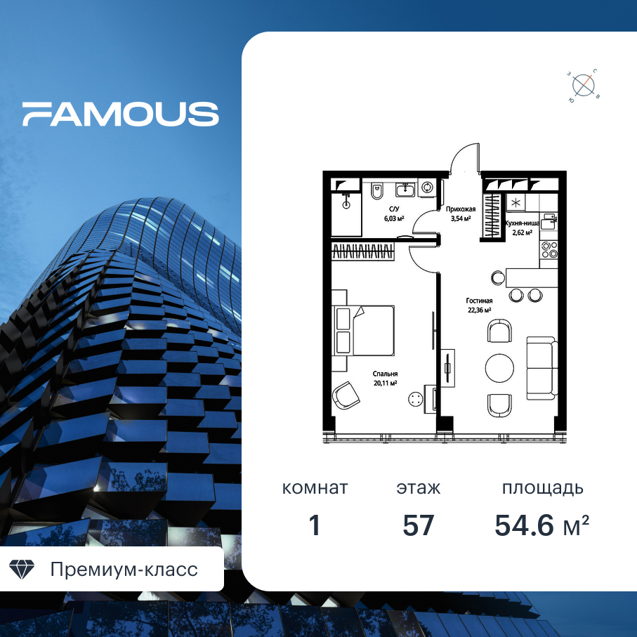 Квартира в Famous 57.70м2 на 57 этаже за 57 671 150 Р.