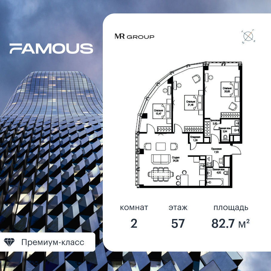 Квартира в Famous 82.77м2 на 57 этаже за 82 728 615 Р.