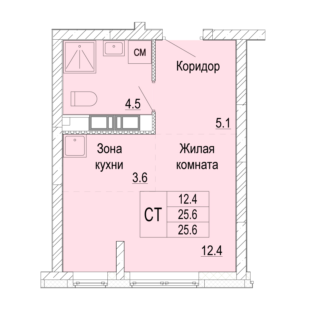 Студия - 25.6м2