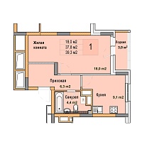 1-комнатная квартира - 29.9м2