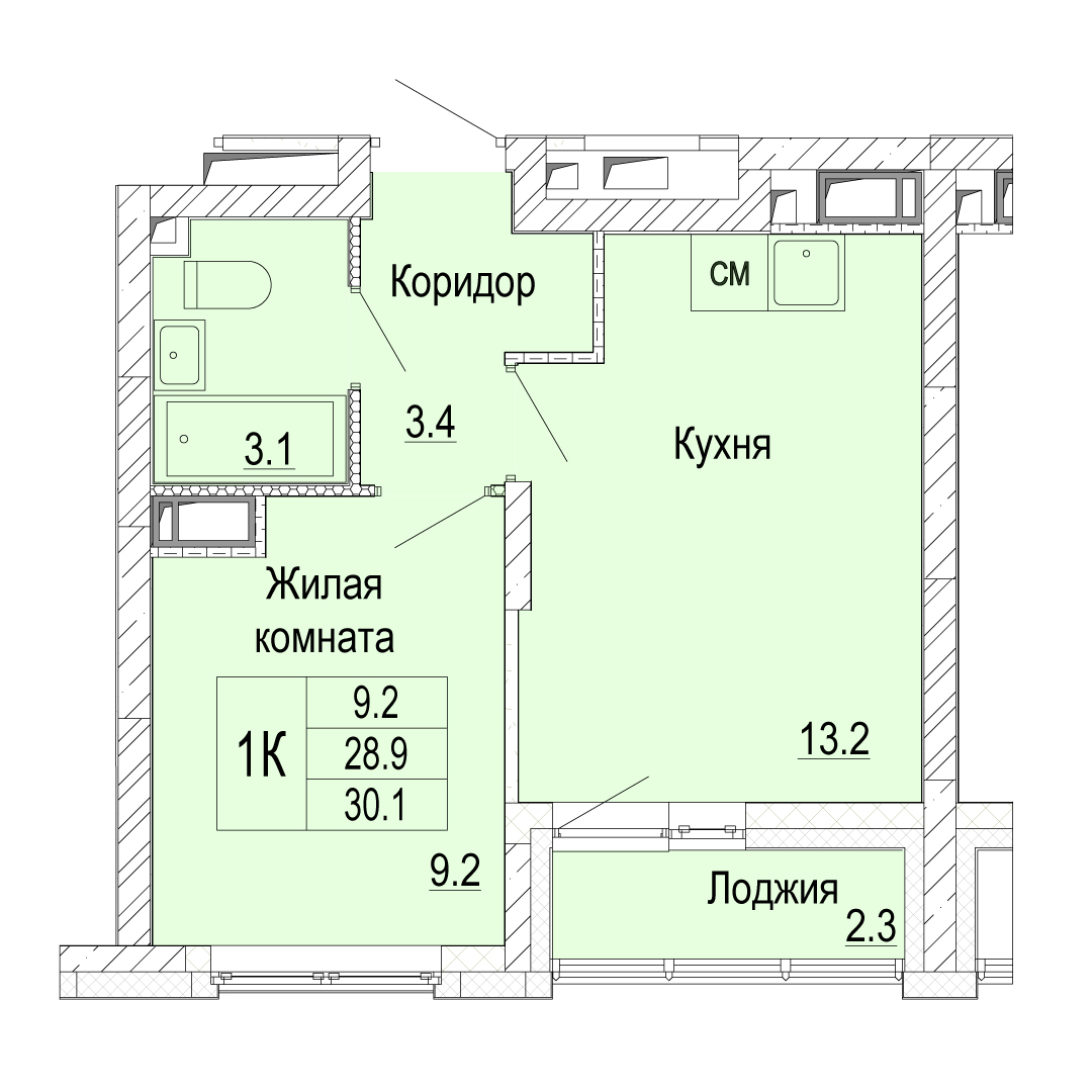 Квартира в Кузнечиха Город 30.1м2 на 13 этаже за 7 317 095 Р.