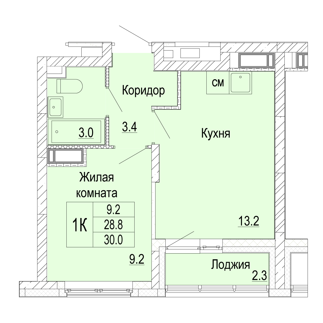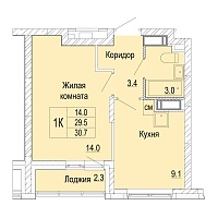 1-комнатная квартира - 30м2