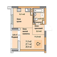 Квартира в Кузнечиха Город 31.5м2 на 22 этаже за 7 506 735 Р.