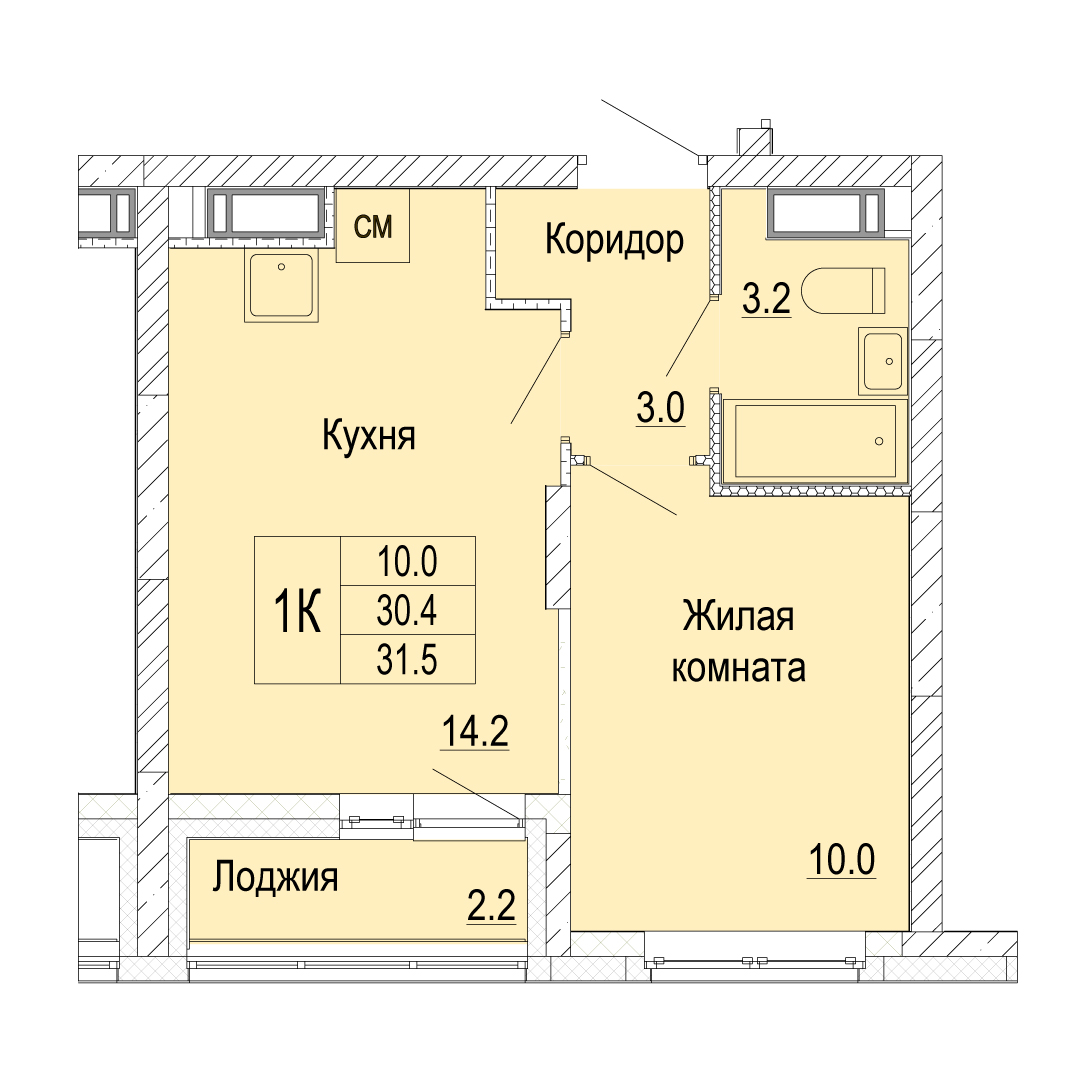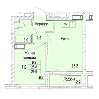 Квартира в Кузнечиха Город 31.5м2 на 24 этаже за 7 506 735 Р.