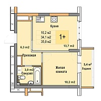 1-комнатная квартира - 31.6м2