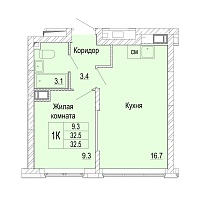 Квартира в Кузнечиха Город 31.6м2 на 18 этаже за 7 462 215 Р.