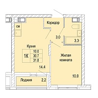 Квартира в Кузнечиха Город 31.6м2 на 21 этаже за 7 529 207 Р.
