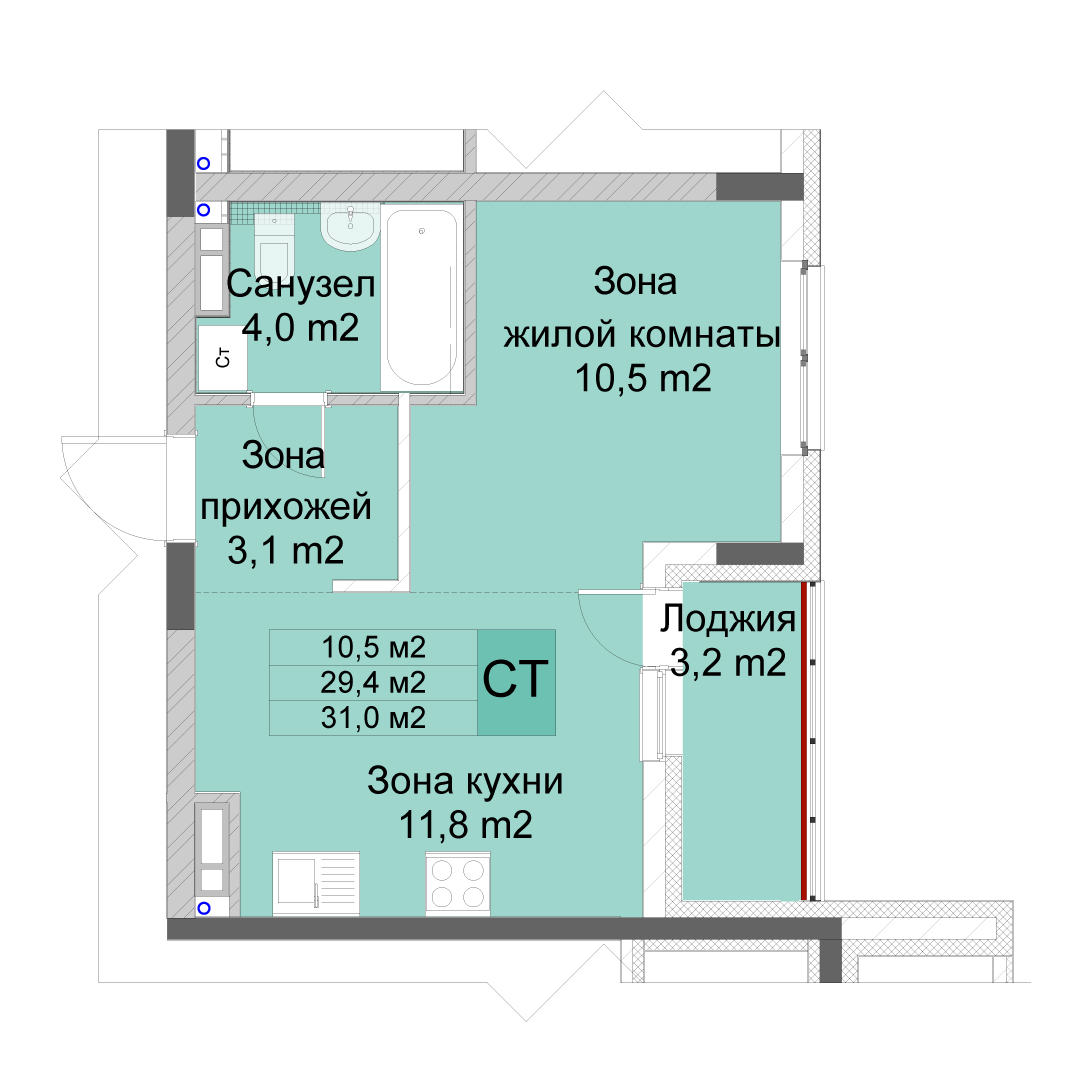 Квартира в Кузнечиха Город 31м2 на 2 этаже за 6 122 395 Р.