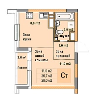 Квартира в Кузнечиха Город 34.4м2 на 9 этаже за 8 013 123 Р.