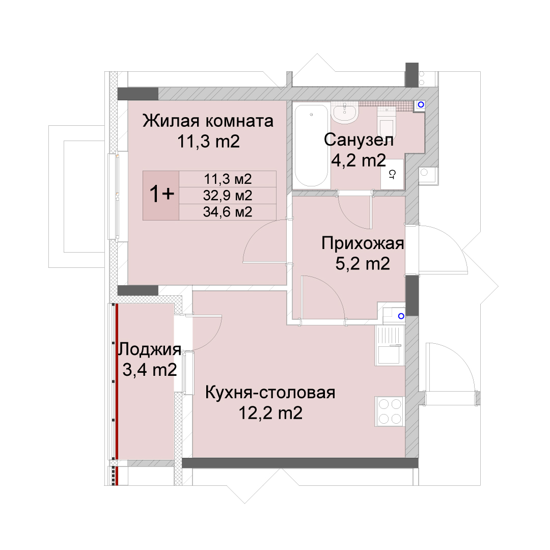 Квартира в Кузнечиха Город 34.6м2 на 1 этаже за 6 168 775 Р.