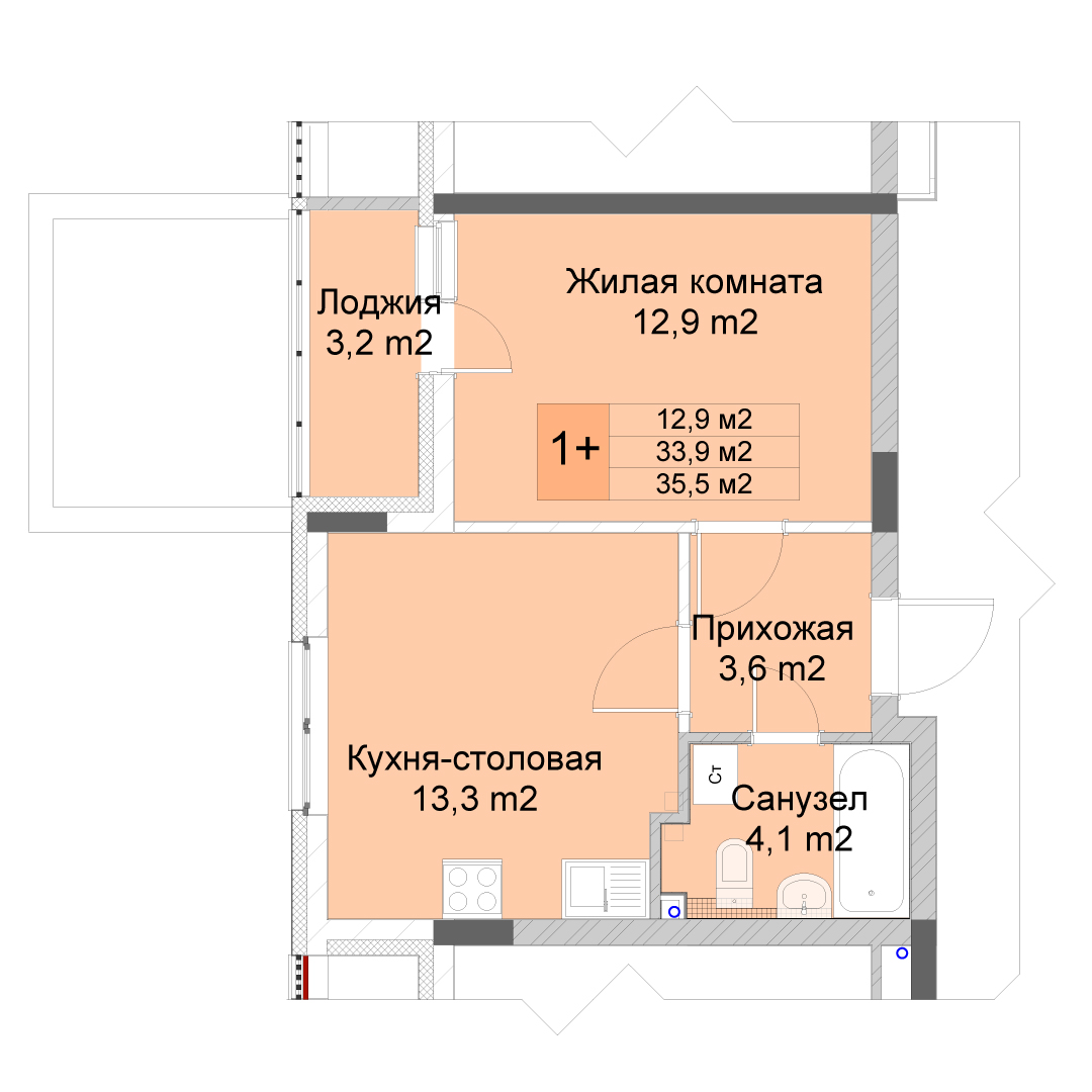 Квартира в Кузнечиха Город 35.5м2 на 2 этаже за 7 011 124 Р.