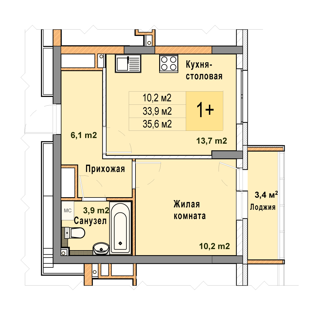 Квартира в Кузнечиха Город 35.6м2 на 25 этаже за 7 754 850 Р.
