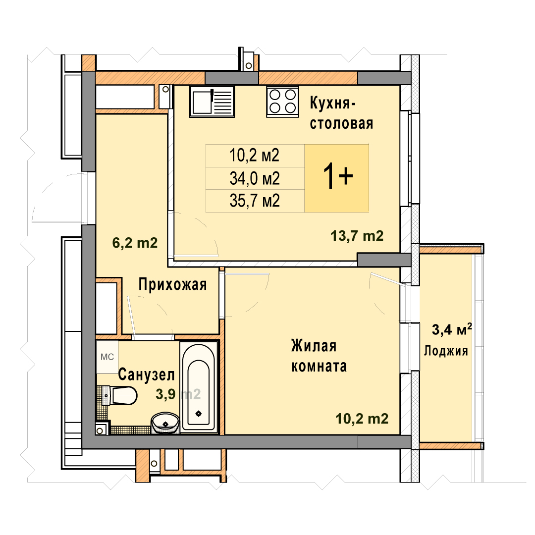 Квартира в Кузнечиха Город 35.7м2 на 23 этаже за 7 754 850 Р.