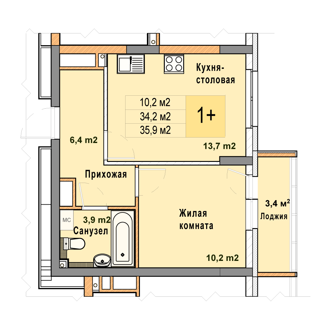 Квартира в Кузнечиха Город 35.9м2 на 16 этаже за 7 864 036 Р.