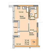 1-комнатная квартира - 36.3м2