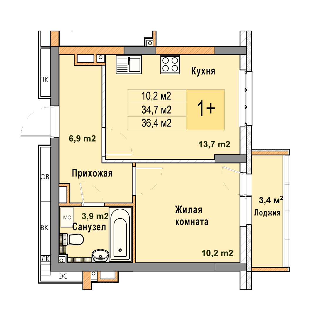 Квартира в Кузнечиха Город 36.4м2 на 3 этаже за 7 975 051 Р.