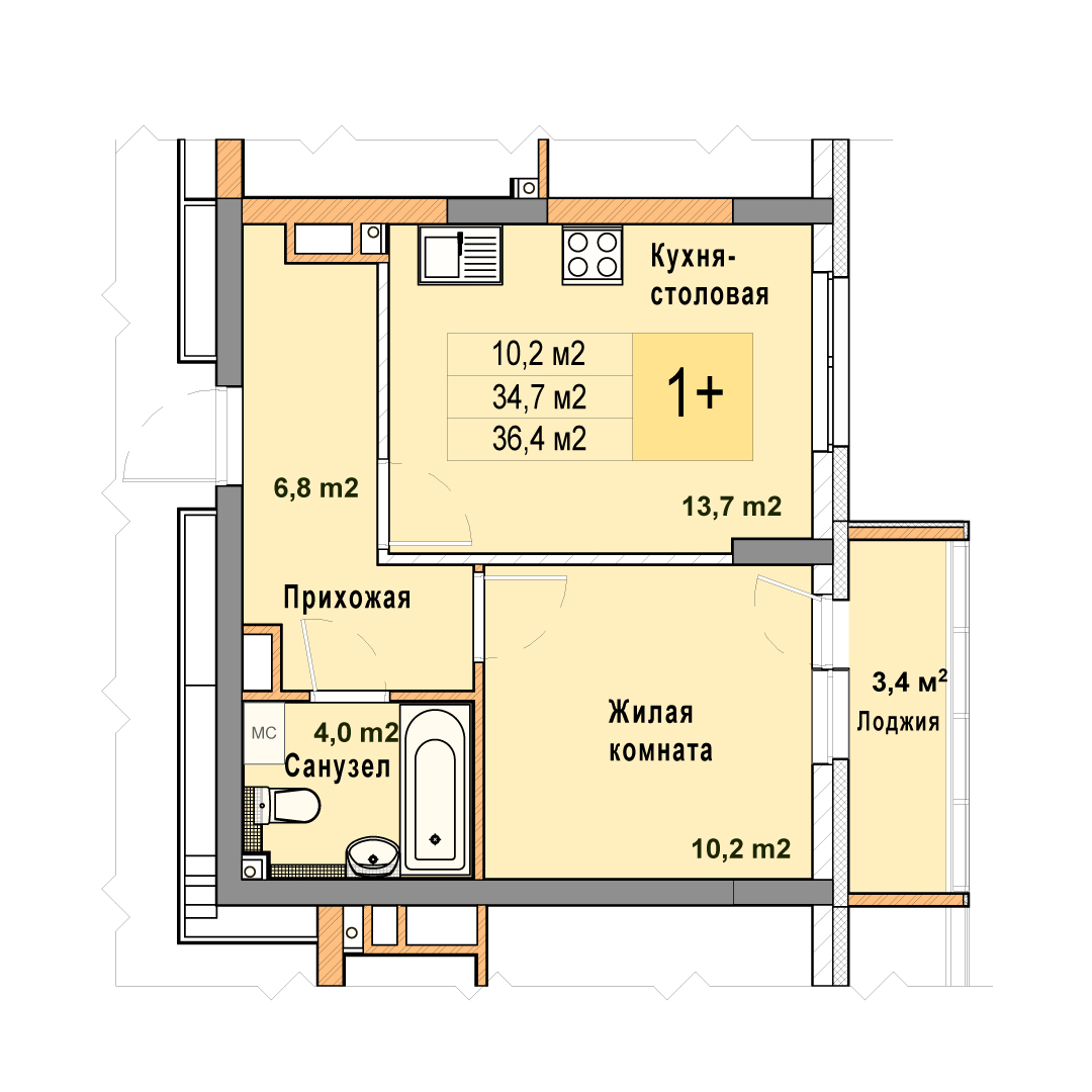 Квартира в Кузнечиха Город 36.4м2 на 5 этаже за 7 752 370 Р.