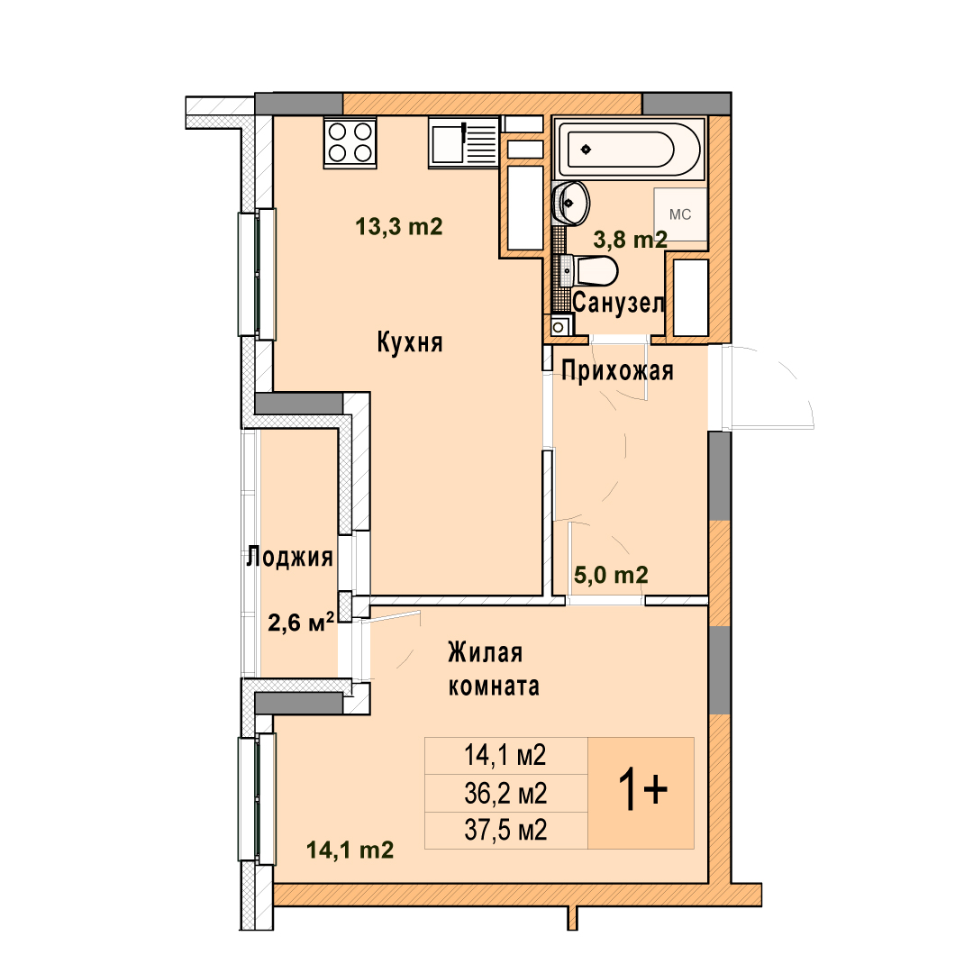 Квартира в Кузнечиха Город 37.5м2 на 19 этаже за 8 058 940 Р.