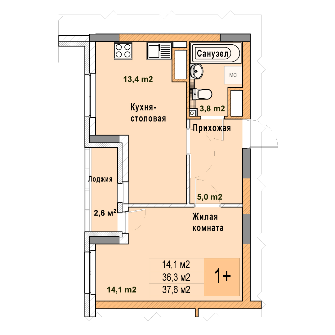 Квартира в Кузнечиха Город 37.6м2 на 19 этаже за 7 754 850 Р.