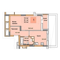 1-комнатная квартира - 38.9м2