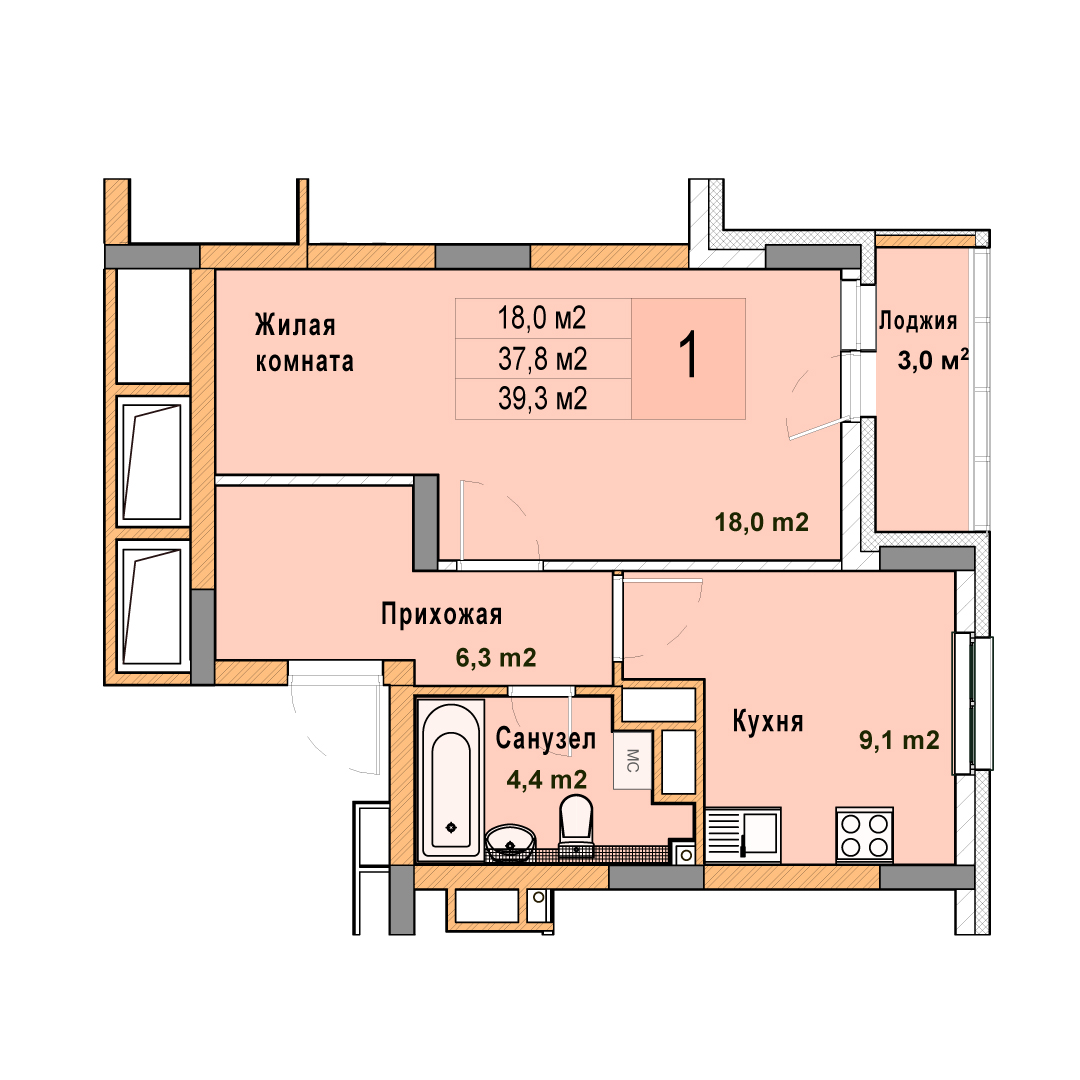 Квартира в Кузнечиха Город 39.3м2 на 9 этаже за 8 048 731 Р.