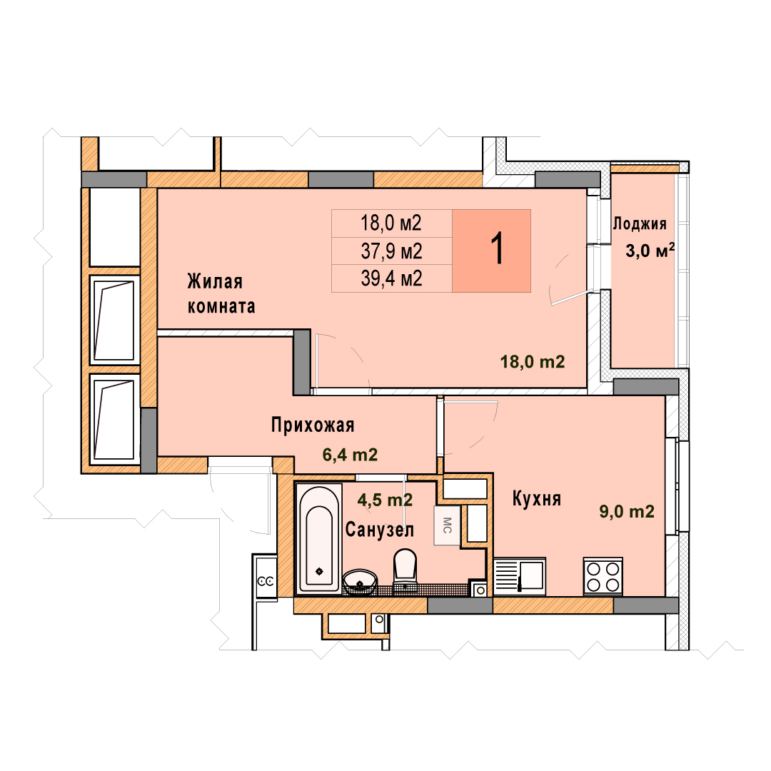 Квартира в Кузнечиха Город 39.4м2 на 5 этаже за 7 702 370 Р.