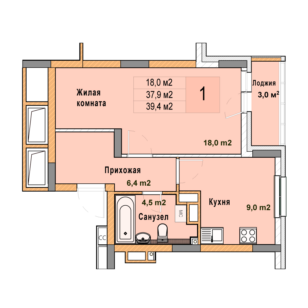 Квартира в Кузнечиха Город 39.4м2 на 6 этаже за 8 048 731 Р.