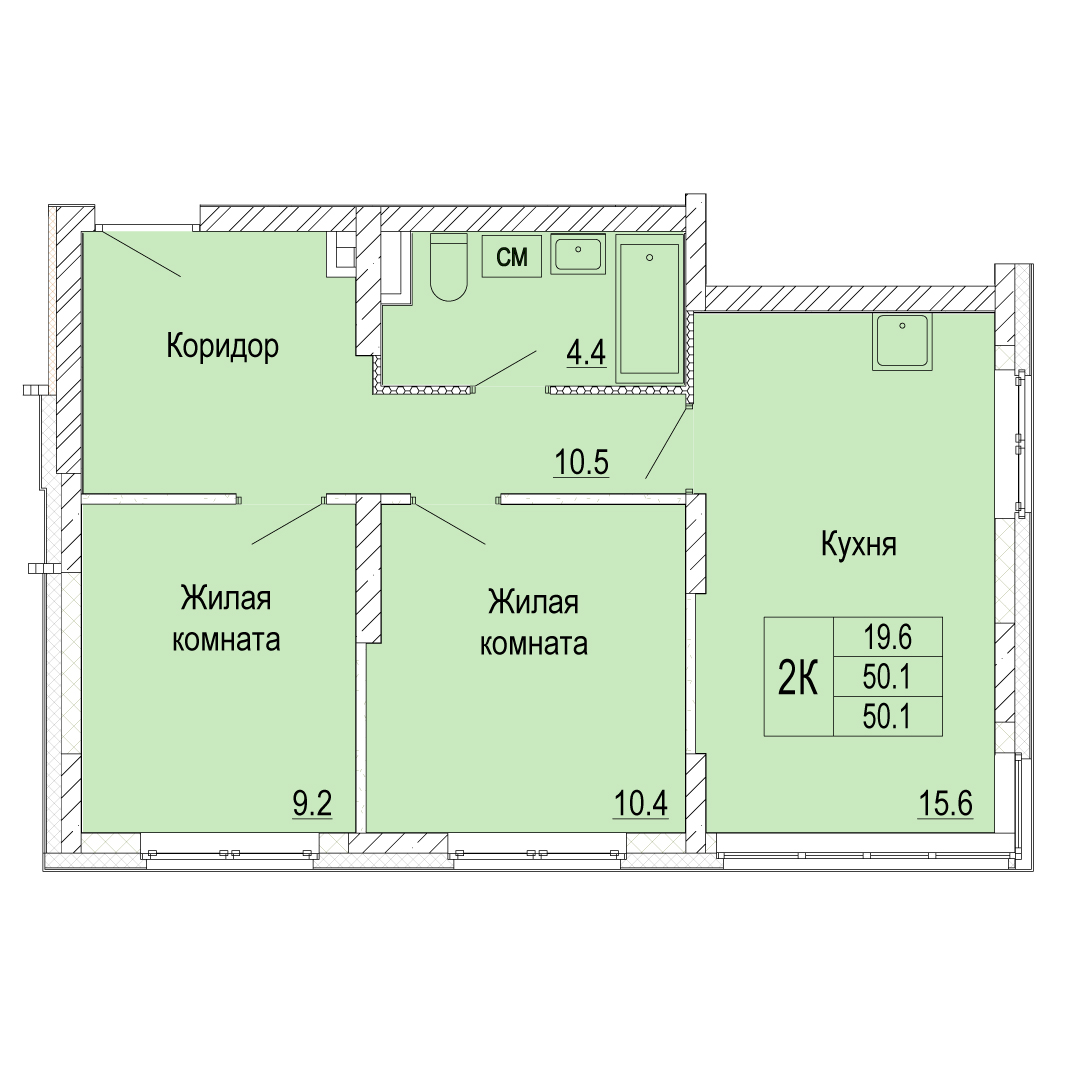 Квартира в Кузнечиха Город 50.1м2 на 1 этаже за 9 030 065 Р.