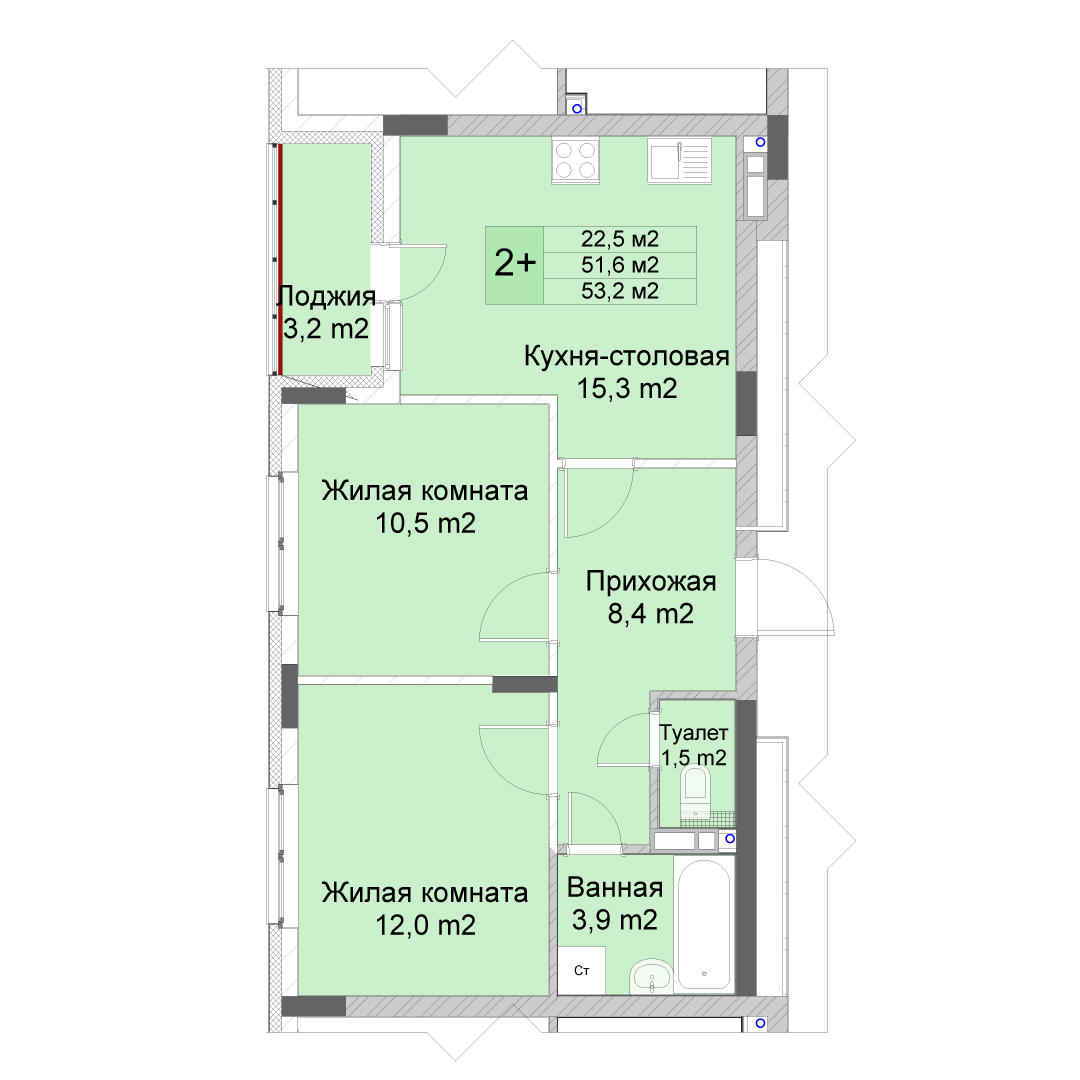 Квартира в Кузнечиха Город 53.2м2 на 2 этаже за 9 166 855 Р.
