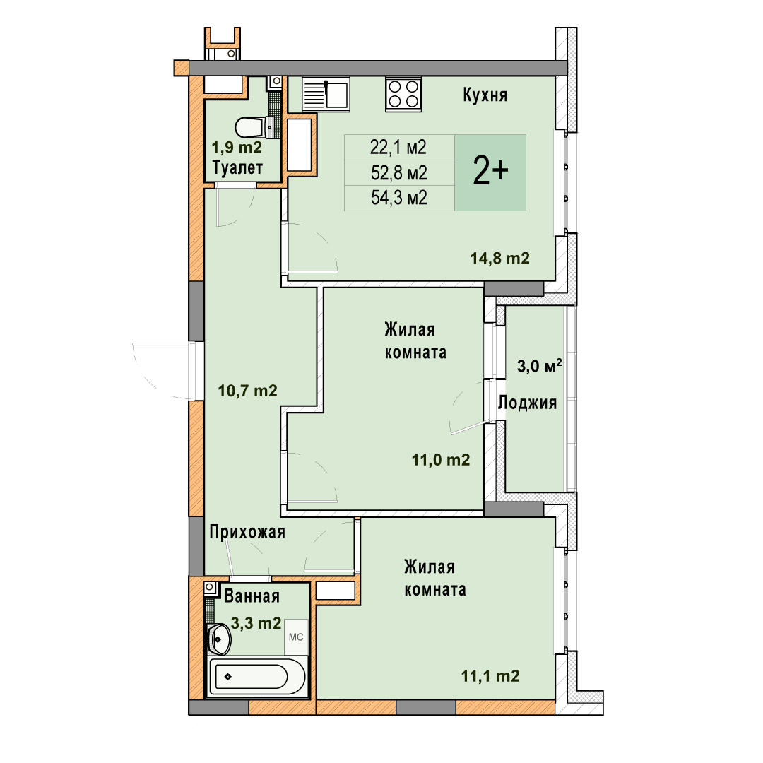Квартира в Кузнечиха Город 54.3м2 на 16 этаже за 9 505 231 Р.