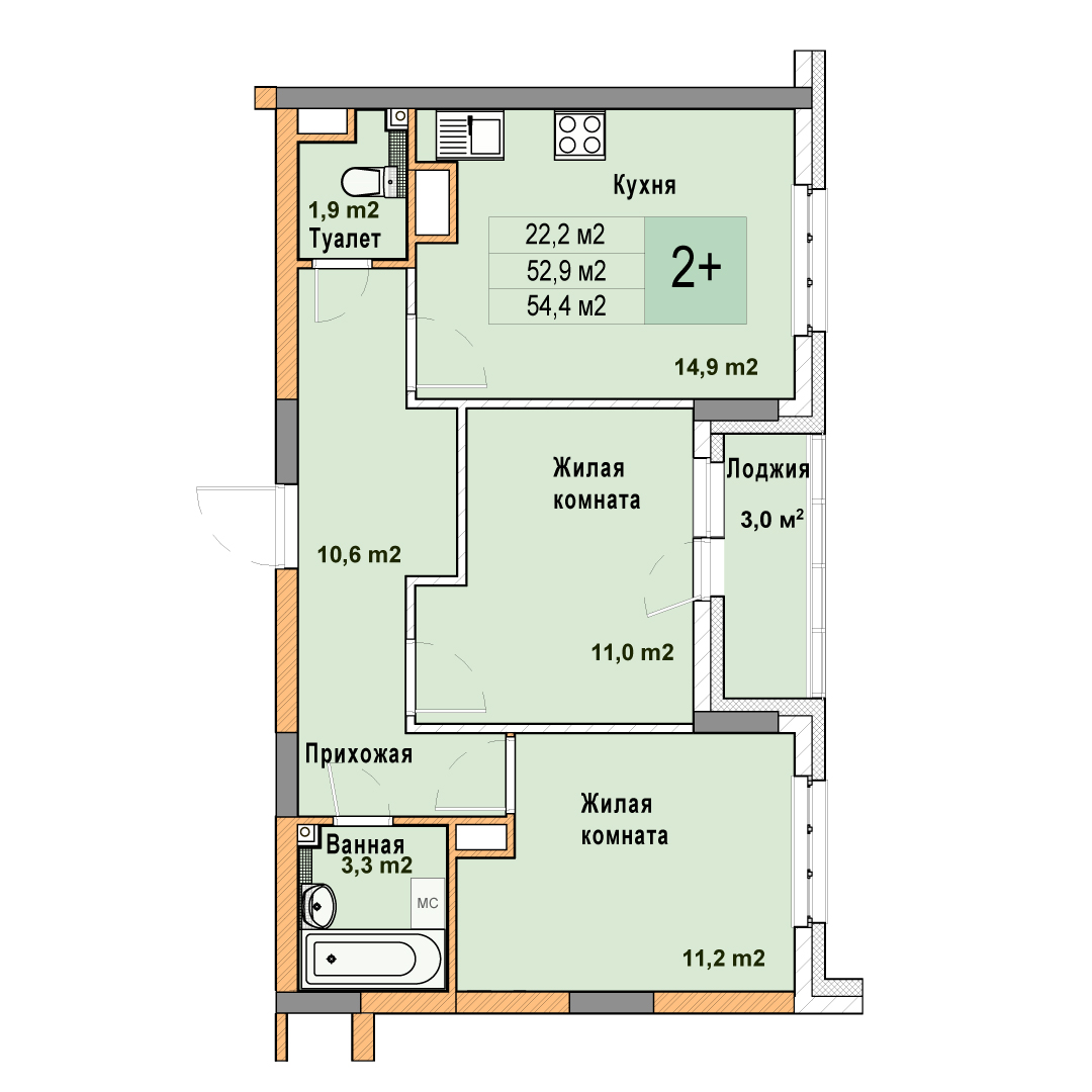 Квартира в Кузнечиха Город 54.4м2 на 11 этаже за 9 505 231 Р.