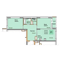 2-комнатная квартира - 54.4м2