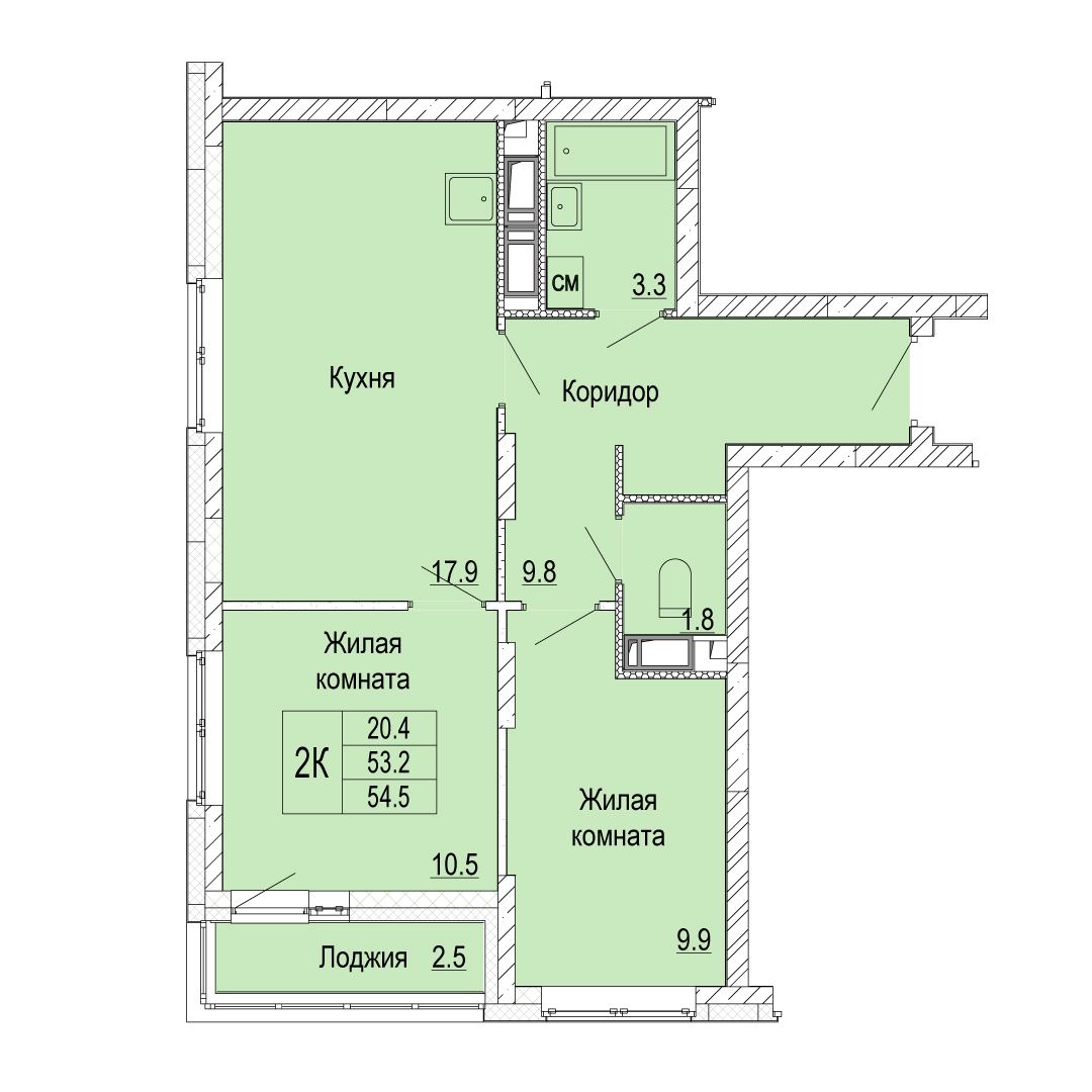 Квартира в Кузнечиха Город 54.5м2 на 13 этаже за 9 478 668 Р.