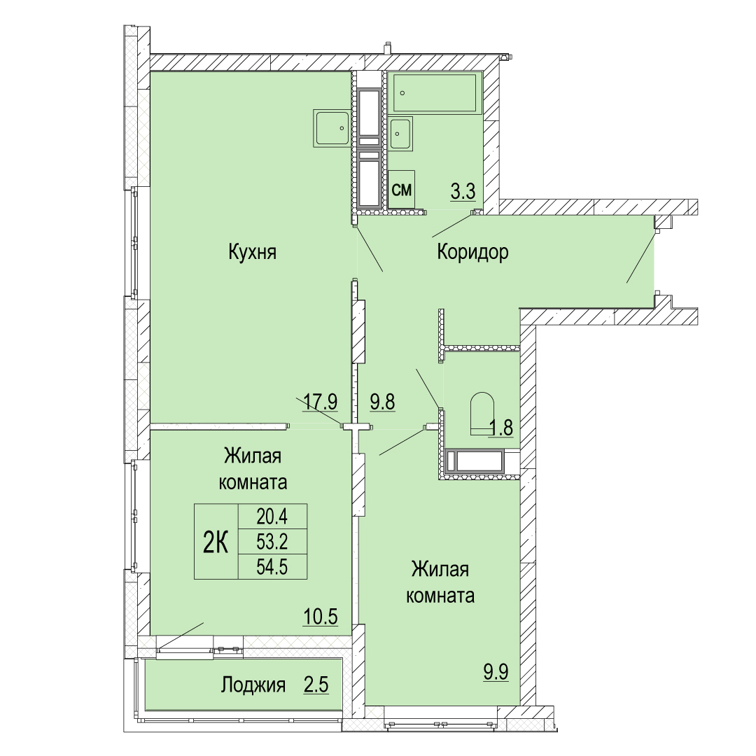 Квартира в Кузнечиха Город 54.5м2 на 24 этаже за 9 566 140 Р.