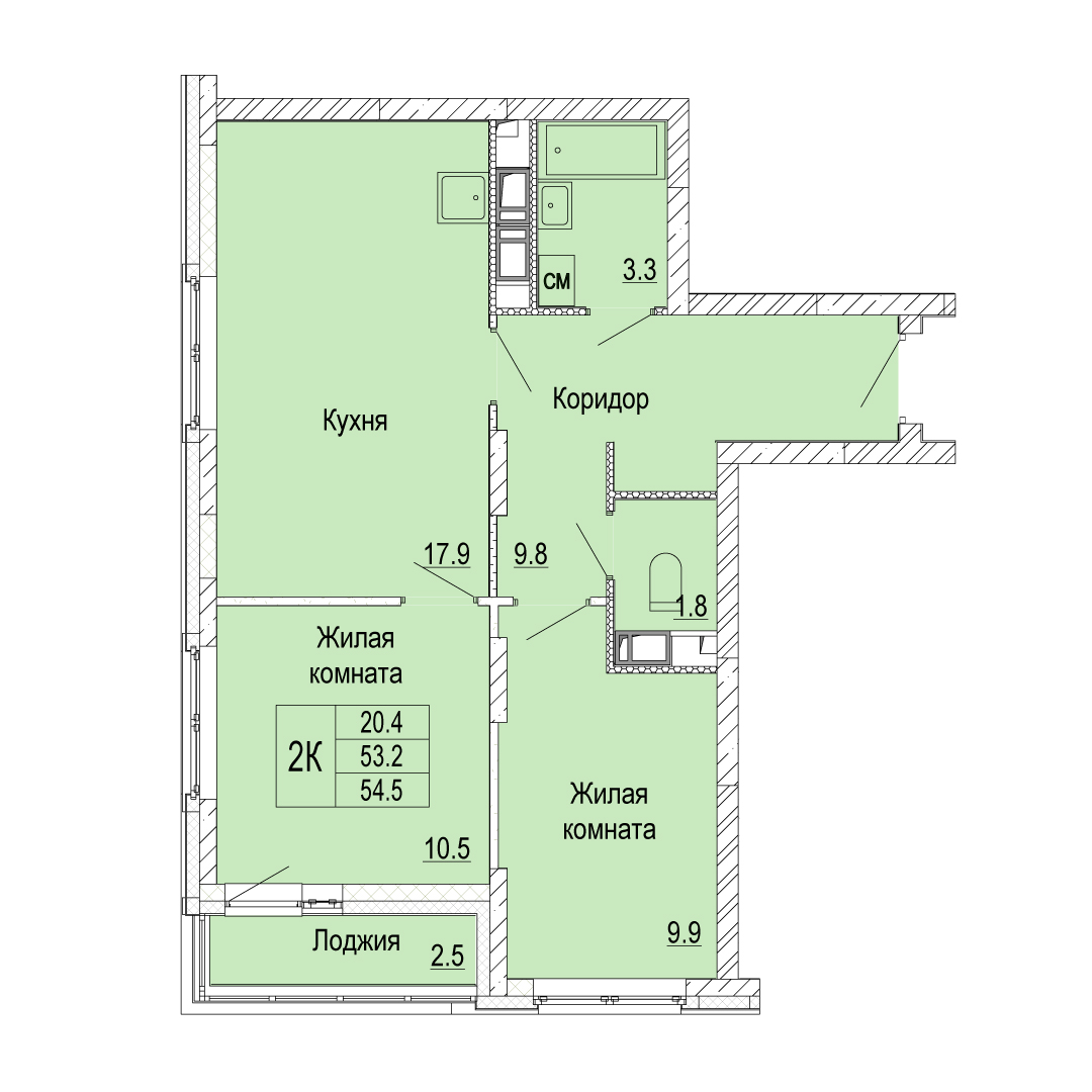 Квартира в Кузнечиха Город 54.5м2 на 6 этаже за 9 391 195 Р.