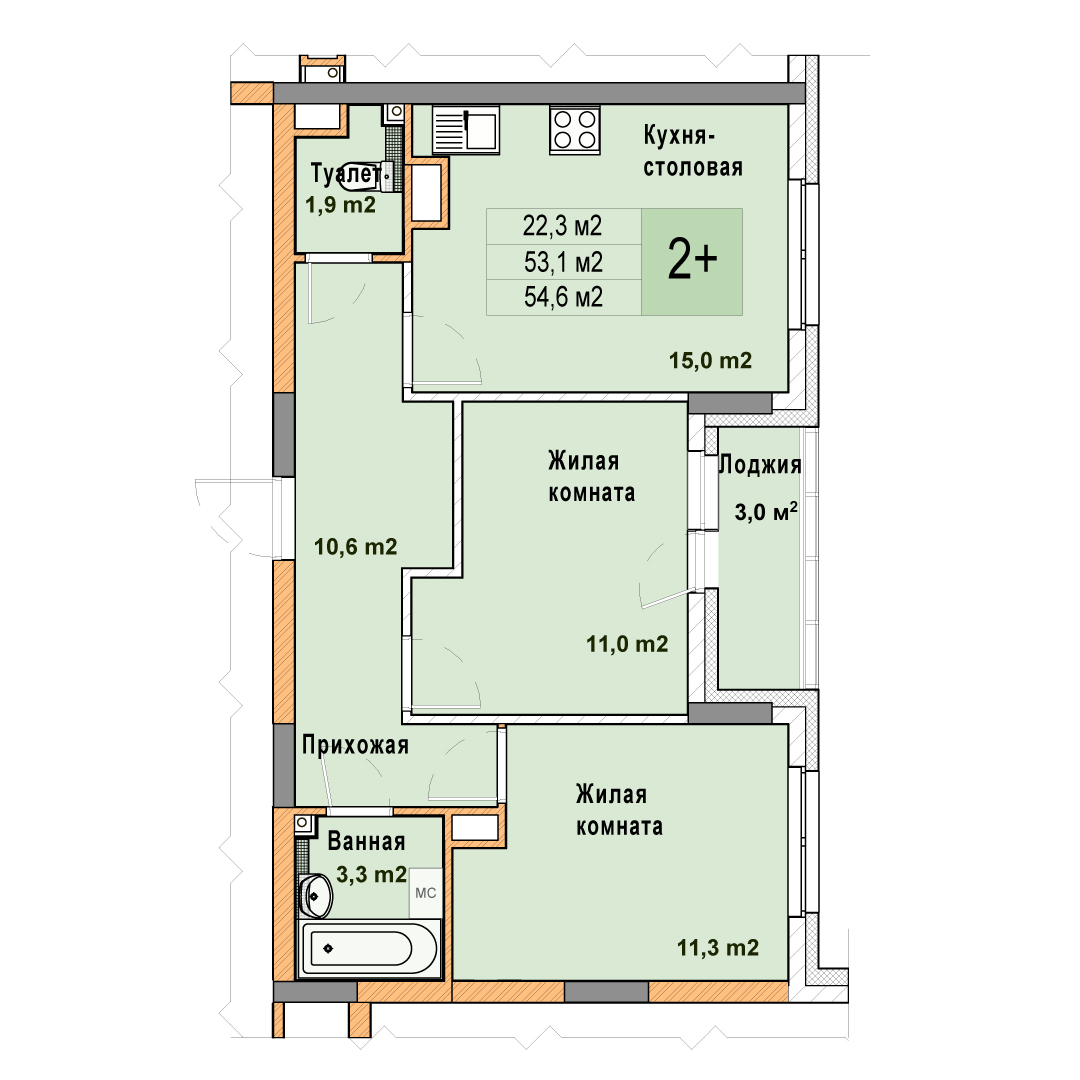 Квартира в Кузнечиха Город 54.6м2 на 8 этаже за 9 154 850 Р.